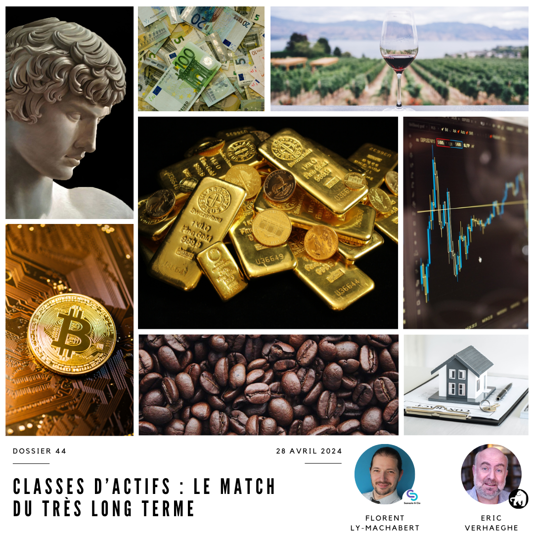 Retrouvez notre 44ème dossier, disponible sur le site du Courrier de stratèges ! Après avoir posé les bases de notre stratégie (cliquez ici), puis abordé l’or, les métaux blancs, les matières premières, l’art-investissement, le secteur non coté, les devises étrangères, les actions françaises, les cryptoactifs, les obligations souveraines, l’assurance-vie, l’entreposage physique de l’or, la nature-investissement, les SCPI, la pierre et l’immobilier alternatif, les lois de défiscalisation immobilière, la débancarisation en cryptos, la gestion en bon père de famille et l’optimisation successorale, les principales stratégies de désendettement, la situation d’Air Liquide, la fiscalité des cryptos, le mode d’emploi des actions en bourse, l’achat d’or en période de crise et de guerre, la préparation de sa retraite, les banques digitales et autres courtiers en ligne, le Plan d’Épargne Logement (PEL), les ETF, les produits structurés, l’Impôt sur la Fortune Immobilière, les opportunités d’investissement en Inde, les actions et obligations émergentes, les opportunités d’investissement au Japon, les enchères, notamment immobilières, la négociation d’un crédit immobilier en 2024, une mise à jour du portefeuille d’actions que nous vous avions proposé dans le dossier N°8, une rétrospective des 23 dossiers parus en 2023, la création de rentes, la transmission du patrimoine sans en perdre le contrôle, les SCI, les stratégies légales d’évitement d’un contrôle fiscal, l’hydrogène, les labels ESG et les investissements santé, nous consacrons ce neuvième dossier de l’année au match du long terme entre classes d’actifs .